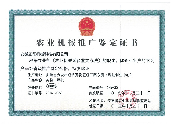 農(nóng)業(yè)機械推廣鑒定證書(1)